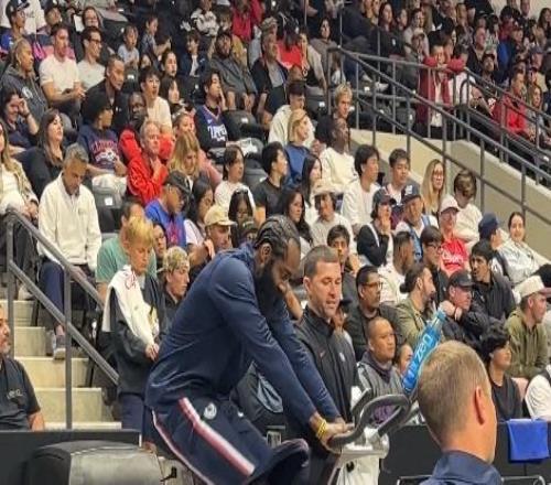 非常認真!比賽期間哈登在場邊進行完整的單車訓練