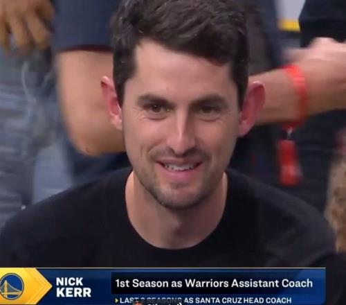 賽后,美媒NBA Memes曬出轉(zhuǎn)播方所顯示的畫面,其中顯示科爾兒子尼古拉斯·科爾已成為勇士助教。