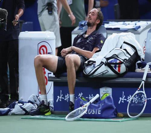 搶七之前,梅德維德夫右腿抽筋。主裁讓他的理療師進場,但梅德維德夫沒有接受處理,自己簡單拉伸緩解后,以進攻為主,幾乎放棄防守地打完了第二盤。勒納·錢追回一盤,雙方進入決勝盤。