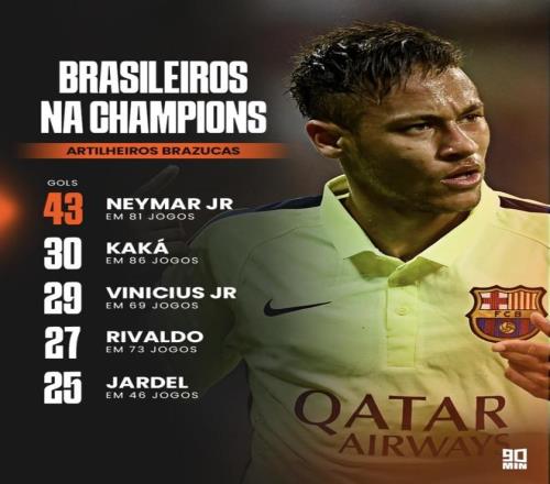 巴西歐冠射手榜前五名!看到榜單后才知道內(nèi)馬爾有多厲害