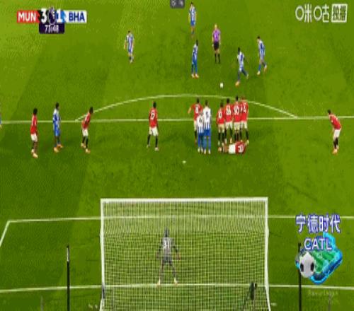 第34分鐘,卡塞米羅弧頂處抽射破門,曼聯(lián)2-0布萊頓